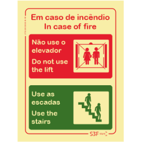 Design Personalizado > Segurança contra Incêndio > Sinal de em caso de incêndio não usar o elevador, usar as escadas (in case of fire do not use the lift, use the stairs)