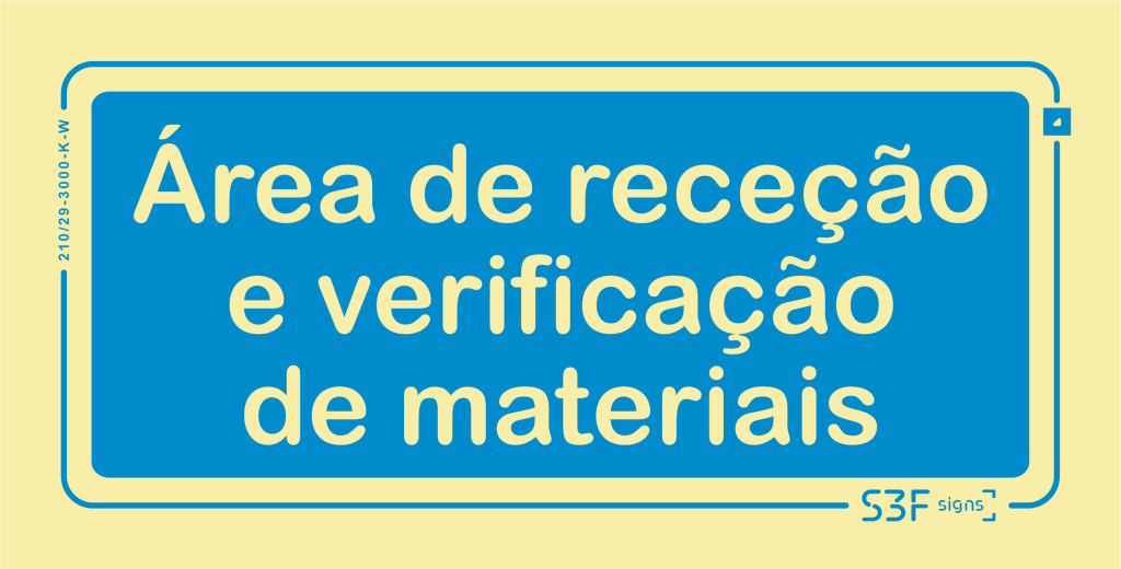 Sinal de informação, área de receção e verificação de materiais